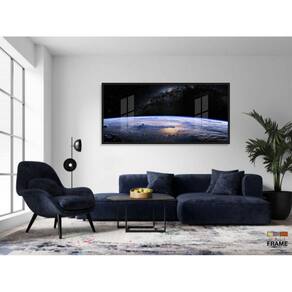 Quadro Paisagem Da Terra Vista Do Espaço 130x60 Moldura Preta 2x2