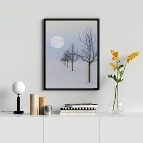 O quadro paisagem neve árvores lua 33x24cm é perfeito para decorar qualquer ambiente, seja ele o quarto, sala, cozinha, escritório, área gourmet e muito mais. Chega de paredes vazias! Com medidas de 33x24cm A4 , cada peça é feita com papel fotográfico brilhante de altíssima resolução, garantindo uma imagem nítida e de qualidade.