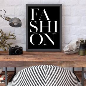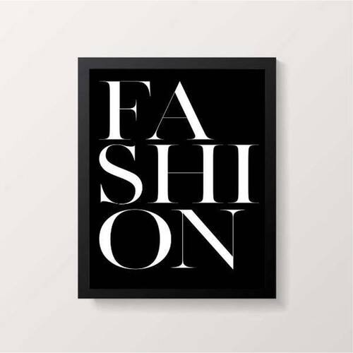 Quadro palavra fashion fundo preto 45x34cm - com vidro Moldura: madeira preta Informações do produto tire todas as suas dúvidas no descritivo abaixo: decoração para quarto, sala, cozinha, escritório, área gourmet e muito mais. Chega de paredes vazias medidas - cada peça tem 45x34cm a3 . Material do papel - papel fotográfico brilhante de altíssima resolução acabamento - todos os quadros são acompanhados de vidro para proteção da imagem. - moldura em madeira maciça na cor preta e pendurador . - os quadros são embalados de forma segura com plástico bolha com camada dupla de acordo com o tamanho dos quadros. Garantia - garantia de 3 meses. Meu quadro chegou. Como posso fixá-lo Você precisa apenas de um martelo e um prego, pois os quadros já vão acompanhados de penduradores. Esta é a forma mais indicada. Como posso limpar meu quadro A limpeza é feita como um móvel comum da sua casa. Apenas um pano seco ou espanador são suficientes para tal