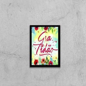 Quadro palavra gratidão - floral 45x34cm - com vidro Moldura: madeira preta Informações do produto tire todas as suas dúvidas no descritivo abaixo: decoração para quarto, sala, cozinha, escritório, área gourmet e muito mais. Chega de paredes vazias medidas - cada peça tem 45x34cm a3 . Material do papel - papel fotográfico brilhante de altíssima resolução acabamento - todos os quadros são acompanhados de vidro para proteção da imagem. - moldura em madeira maciça na cor preta e pendurador . - os quadros são embalados de forma segura com plástico bolha com camada dupla de acordo com o tamanho dos quadros. Garantia - garantia de 3 meses. Meu quadro chegou. Como posso fixá-lo Você precisa apenas de um martelo e um prego, pois os quadros já vão acompanhados de penduradores. Esta é a forma mais indicada. Como posso limpar meu quadro A limpeza é feita como um móvel comum da sua casa. Apenas um pano seco ou espanador são suficientes para tal
