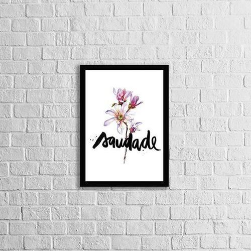 Quadro palavra saudade 45x34cm - com vidro Moldura: madeira preta Informações do produto tire todas as suas dúvidas no descritivo abaixo: decoração para quarto, sala, cozinha, escritório, área gourmet e muito mais. Chega de paredes vazias medidas - cada peça tem 45x34cm a3 . Material do papel - papel fotográfico brilhante de altíssima resolução acabamento - todos os quadros são acompanhados de vidro para proteção da imagem. - moldura em madeira maciça na cor preta e pendurador . - os quadros são embalados de forma segura com plástico bolha com camada dupla de acordo com o tamanho dos quadros. Garantia - garantia de 3 meses. Meu quadro chegou. Como posso fixá-lo Você precisa apenas de um martelo e um prego, pois os quadros já vão acompanhados de penduradores. Esta é a forma mais indicada. Como posso limpar meu quadro A limpeza é feita como um móvel comum da sua casa. Apenas um pano seco ou espanador são suficientes para tal