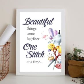 Quadro para atelier de costura - frase 24x18cm - com vidro