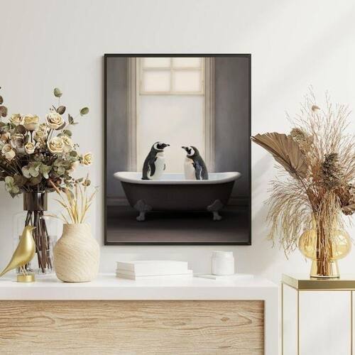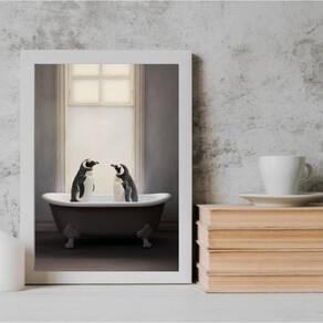 Quadro para banheiro - casal de pinguins 45x34cm - com vidro Moldura: madeira branca Informações do produto tire todas as suas dúvidas no descritivo abaixo: decoração para quarto, sala, cozinha, escritório, área gourmet e muito mais. Chega de paredes vazias medidas - cada peça tem 45x34cm a3 . Material do papel - papel fotográfico brilhante de altíssima resolução acabamento - todos os quadros são acompanhados de vidro para proteção da imagem. - moldura em madeira maciça na cor preta ou branca conforme produto escolhido e pendurador . - os quadros são embalados de forma segura com plástico bolha com camada dupla de acordo com o tamanho dos quadros. Garantia - garantia de 3 meses. Meu quadro chegou. Como posso fixá-lo Você precisa apenas de um martelo e um prego, pois os quadros já vão acompanhados de penduradores. Esta é a forma mais indicada. Como posso limpar meu quadro A limpeza é feita como um móvel comum da sua casa. Apenas um pano seco ou espanador são suficientes para tal