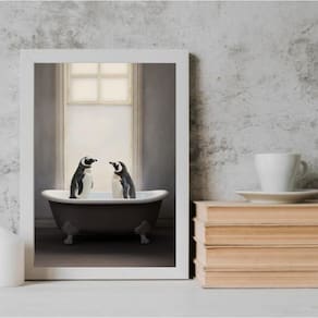 Quadro para banheiro - casal de pinguins 45x34cm Moldura: madeira preta Informações do produto tire todas as suas dúvidas no descritivo abaixo: decoração para quarto, sala, cozinha, escritório, área gourmet e muito mais. Chega de paredes vazias. Medidas - cada peça tem 45x34cm a3 . Material do papel - papel fotográfico brilhante de altíssima resolução acabamento - todos os quadros são acompanhados de uma película de acetato para proteção da imagem. - os quadros são embalados de forma segura com plástico bolha com camada dupla de acordo com o tamanho dos quadros. Garantia - garantia de 3 meses. Meu quadro chegou. Como posso fixá-lo Você precisa apenas de um martelo e um prego, pois os quadros já vão acompanhados de penduradores. Esta é a forma mais indicada. Caso prefira, você pode utilizar uma fita dupla face neste caso, sugerimos de alta qualidade para evitar que descole e seu quadro caia . Como posso limpar meu quadro A limpeza é feita como um móvel comum da sua casa. Apenas um pano seco ou espanador são suficientes para tal