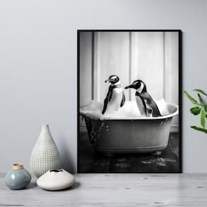 Quadro Para Banheiro Casal De Pinguins 45X34Cm