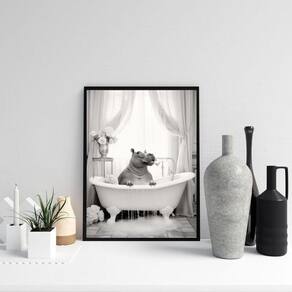 Quadro para banheiro hipopótamo no banho 45x34cm - com vidro Cor: moldura preta Informações do produto tire todas as suas dúvidas no descritivo abaixo: decoração para quarto, sala, cozinha, escritório, área gourmet e muito mais. Chega de paredes vazias medidas - cada peça tem 45x34cm a3 . Material do papel - papel fotográfico brilhante de altíssima resolução acabamento - todos os quadros são acompanhados de vidro para proteção da imagem. - moldura em madeira maciça na cor preta ou branca conforme produto escolhido e pendurador . - os quadros são embalados de forma segura com plástico bolha com camada dupla de acordo com o tamanho dos quadros. - de 3 meses. Meu quadro chegou. Como posso fixá-lo Você precisa apenas de um martelo e um prego, pois os quadros já vão acompanhados de penduradores. Esta é a forma mais indicada. Como posso limpar meu quadro A limpeza é feita como um móvel comum da sua casa. Apenas um pano seco ou espanador são suficientes para tal Marca: Não Informado