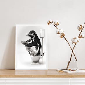 Quadro para banheiro pinguim no vaso 33x24cm Moldura: madeira branca Informações do produto tire todas as suas dúvidas no descritivo abaixo: decoração para quarto, sala, cozinha, escritório, área gourmet e muito mais. Chega de paredes vazias medidas - cada peça tem 33x24cm a4 . Material do papel - papel fotográfico brilhante de altíssima resolução acabamento - todos os quadros são acompanhados de uma película de acetato para proteção da imagem. - os quadros são embalados de forma segura com plástico bolha com camada dupla de acordo com o tamanho dos quadros. Garantia - garantia de 3 meses. Meu quadro chegou. Como posso fixá-lo Você precisa apenas de um martelo e um prego, pois os quadros já vão acompanhados de penduradores. Esta é a forma mais indicada. Caso prefira, você pode utilizar uma fita dupla face neste caso, sugerimos de alta qualidade para evitar que descole e seu quadro caia . Como posso limpar meu quadro A limpeza é feita como um móvel comum da sua casa. Apenas um pano seco ou espanador são suficientes para tal