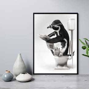 Quadro para banheiro pinguim no vaso 45x34cm - com vidro Moldura: madeira preta Informações do produto tire todas as suas dúvidas no descritivo abaixo: decoração para quarto, sala, cozinha, escritório, área gourmet e muito mais. Chega de paredes vazias medidas - cada peça tem 45x34cm a3 . Material do papel - papel fotográfico brilhante de altíssima resolução acabamento - todos os quadros são acompanhados de vidro para proteção da imagem. - moldura em madeira maciça na cor preta ou branca conforme produto escolhido e pendurador . - os quadros são embalados de forma segura com plástico bolha com camada dupla de acordo com o tamanho dos quadros. - de 3 meses. Meu quadro chegou. Como posso fixá-lo Você precisa apenas de um martelo e um prego, pois os quadros já vão acompanhados de penduradores. Esta é a forma mais indicada. Como posso limpar meu quadro A limpeza é feita como um móvel comum da sua casa. Apenas um pano seco ou espanador são suficientes para tal Marca: Não Informado Ean: 7892274257043