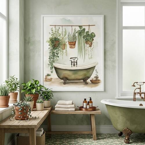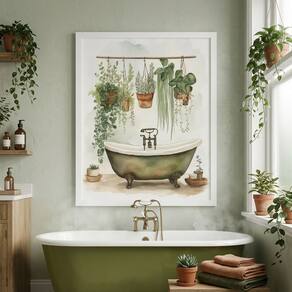 Quadro Para Banheiro Plantinhas 50x70 Cm Mold Branca