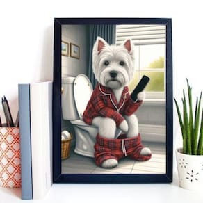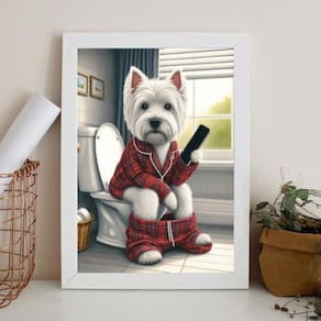 Quadro para banheiro west highland 33x24cm - com vidro Moldura: madeira preta Informações do produto tire todas as suas dúvidas no descritivo abaixo: decoração para quarto, sala, cozinha, escritório, área gourmet e muito mais. Chega de paredes vazias medidas - cada peça tem 33x24cm a4 . Material do papel - papel fotográfico brilhante de altíssima resolução acabamento - todos os quadros são acompanhados de vidro para proteção da imagem. - moldura em madeira maciça na cor preta ou branca conforme produto escolhido e pendurador . - os quadros são embalados de forma segura com plástico bolha com camada dupla de acordo com o tamanho dos quadros. Garantia - garantia de 3 meses. Meu quadro chegou. Como posso fixá-lo Você precisa apenas de um martelo e um prego, pois os quadros já vão acompanhados de penduradores. Esta é a forma mais indicada. Como posso limpar meu quadro A limpeza é feita como um móvel comum da sua casa. Apenas um pano seco ou espanador são suficientes para tal