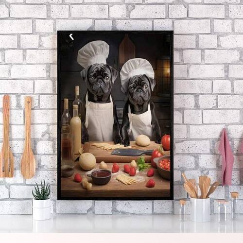 Quadro para cozinha cães raça pug 33x24cm - com vidro