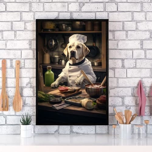 Quadro para cozinha cão raça labrador 24x18cm - com vidro Moldura: madeira branca Informações do produto tire todas as suas dúvidas no descritivo abaixo: decoração para quarto, sala, cozinha, escritório, área gourmet e muito mais. Chega de paredes vazias medidas - cada peça tem 24x18cm a5 . Material do papel - papel fotográfico brilhante de altíssima resolução acabamento - todos os quadros são acompanhados de vidro para proteção da imagem. - moldura em madeira maciça na cor preta ou branca conforme produto escolhido e pendurador . - os quadros são embalados de forma segura com plástico bolha com camada dupla de acordo com o tamanho dos quadros. Garantia - garantia de 3 meses. Meu quadro chegou. Como posso fixá-lo Você precisa apenas de um martelo e um prego, pois os quadros já vão acompanhados de penduradores. Esta é a forma mais indicada. Como posso limpar meu quadro A limpeza é feita como um móvel comum da sua casa. Apenas um pano seco ou espanador são suficientes para tal Ean: 7894019135470