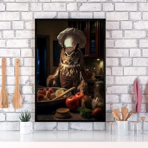 Quadro para cozinha coruja cozinheira 24x18cm Moldura: madeira preta Informações do produto tire todas as suas dúvidas no descritivo abaixo: decoração para quarto, sala, cozinha, escritório, área gourmet e muito mais. Chega de paredes vazias medidas - cada peça tem 24x18cm a5 . Material do papel - papel fotográfico brilhante de altíssima resolução acabamento - todos os quadros são acompanhados de uma película de acetato para proteção da imagem. - os quadros são embalados de forma segura com plástico bolha com camada dupla de acordo com o tamanho dos quadros. Garantia - garantia de 3 meses. Meu quadro chegou. Como posso fixá-lo Você precisa apenas de um martelo e um prego, pois os quadros já vão acompanhados de penduradores. Esta é a forma mais indicada. Caso prefira, você pode utilizar uma fita dupla face neste caso, sugerimos de alta qualidade para evitar que descole e seu quadro caia . Como posso limpar meu quadro A limpeza é feita como um móvel comum da sua casa. Apenas um pano seco ou espanador são suficientes para tal