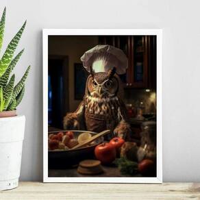 Quadro para cozinha coruja cozinheira 33x24cm Moldura: madeira preta Informações do produto tire todas as suas dúvidas no descritivo abaixo: decoração para quarto, sala, cozinha, escritório, área gourmet e muito mais. Chega de paredes vazias medidas - cada peça tem 33x24cm a4 . Material do papel - papel fotográfico brilhante de altíssima resolução acabamento - todos os quadros são acompanhados de uma película de acetato para proteção da imagem. - os quadros são embalados de forma segura com plástico bolha com camada dupla de acordo com o tamanho dos quadros. Garantia - garantia de 3 meses. Meu quadro chegou. Como posso fixá-lo Você precisa apenas de um martelo e um prego, pois os quadros já vão acompanhados de penduradores. Esta é a forma mais indicada. Caso prefira, você pode utilizar uma fita dupla face neste caso, sugerimos de alta qualidade para evitar que descole e seu quadro caia . Como posso limpar meu quadro A limpeza é feita como um móvel comum da sua casa. Apenas um pano seco ou espanador são suficientes para tal