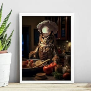 Quadro para cozinha coruja cozinheira 33x24cm