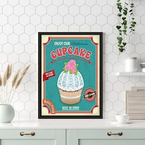 Quadro para cozinha cupcake 24x18cm Cor: moldura branca Informações do produto tire todas as suas dúvidas no descritivo abaixo: decoração para quarto, sala, cozinha, escritório, área gourmet e muito mais. Chega de paredes vazias medidas - cada peça tem 24x18cm a5 . Material do papel - papel fotográfico brilhante de altíssima resolução acabamento - todos os quadros são acompanhados de uma película de acetato para proteção da imagem. - os quadros são embalados de forma segura com plástico bolha com camada dupla de acordo com o tamanho dos quadros. Garantia - garantia de 3 meses. Meu quadro chegou. Como posso fixá-lo Você precisa apenas de um martelo e um prego, pois os quadros já vão acompanhados de penduradores. Esta é a forma mais indicada. Caso prefira, você pode utilizar uma fita dupla face neste caso, sugerimos de alta qualidade para evitar que descole e seu quadro caia . Como posso limpar meu quadro A limpeza é feita como um móvel comum da sua casa. Apenas um pano seco ou espanador são suficientes para tal