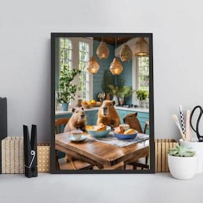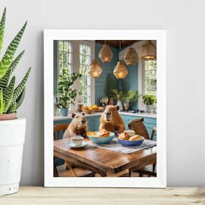 Quadro para cozinha - família capivaras 33x24cm - com vidro Moldura: madeira branca Informações do produto tire todas as suas dúvidas no descritivo abaixo: decoração para quarto, sala, cozinha, escritório, área gourmet e muito mais. Chega de paredes vazias medidas - cada peça tem 33x24cm a4 . Material do papel - papel fotográfico brilhante de altíssima resolução acabamento - todos os quadros são acompanhados de vidro para proteção da imagem. - moldura em madeira maciça na cor preta ou branca conforme produto escolhido e pendurador . - os quadros são embalados de forma segura com plástico bolha com camada dupla de acordo com o tamanho dos quadros. Garantia - garantia de 3 meses. Meu quadro chegou. Como posso fixá-lo Você precisa apenas de um martelo e um prego, pois os quadros já vão acompanhados de penduradores. Esta é a forma mais indicada. Como posso limpar meu quadro A limpeza é feita como um móvel comum da sua casa. Apenas um pano seco ou espanador são suficientes para tal