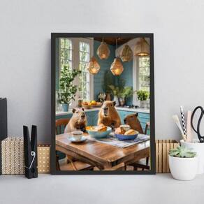 Quadro para cozinha - família capivaras 33x24cm Moldura: madeira branca Informações do produto tire todas as suas dúvidas no descritivo abaixo: decoração para quarto, sala, cozinha, escritório, área gourmet e muito mais. Chega de paredes vazias medidas - cada peça tem 33x24cm a4 . Material do papel - papel fotográfico brilhante de altíssima resolução acabamento - todos os quadros são acompanhados de uma película de acetato para proteção da imagem. - os quadros são embalados de forma segura com plástico bolha com camada dupla de acordo com o tamanho dos quadros. Garantia - garantia de 3 meses. Meu quadro chegou. Como posso fixá-lo Você precisa apenas de um martelo e um prego, pois os quadros já vão acompanhados de penduradores. Esta é a forma mais indicada. Caso prefira, você pode utilizar uma fita dupla face neste caso, sugerimos de alta qualidade para evitar que descole e seu quadro caia . Como posso limpar meu quadro A limpeza é feita como um móvel comum da sua casa. Apenas um pano seco ou espanador são suficientes para tal