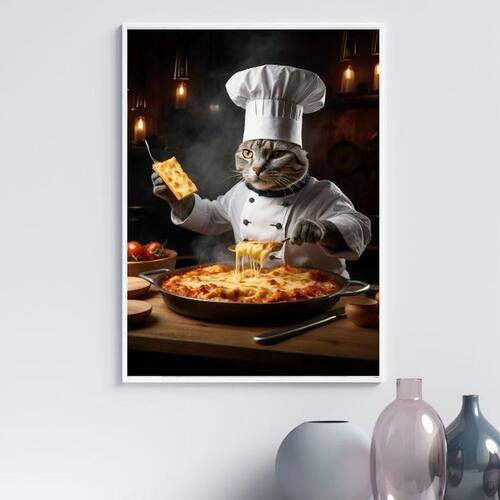 Quadro para cozinha gato chef 33x24cm - com vidro Cor: moldura preta Informações do produto tire todas as suas dúvidas no descritivo abaixo: decoração para quarto, sala, cozinha, escritório, área gourmet e muito mais. Chega de paredes vazias medidas - cada peça tem 33x24cm a4 . Material do papel - papel fotográfico brilhante de altíssima resolução acabamento - todos os quadros são acompanhados de vidro para proteção da imagem. - moldura em madeira maciça na cor preta ou branca conforme produto escolhido e pendurador . - os quadros são embalados de forma segura com plástico bolha com camada dupla de acordo com o tamanho dos quadros. Garantia - garantia de 3 meses. Meu quadro chegou. Como posso fixá-lo Você precisa apenas de um martelo e um prego, pois os quadros já vão acompanhados de penduradores. Esta é a forma mais indicada. Como posso limpar meu quadro A limpeza é feita como um móvel comum da sua casa. Apenas um pano seco ou espanador são suficientes para tal