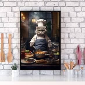 Quadro para cozinha gato cozinheiro 45x34cm Moldura: madeira branca Informações do produto tire todas as suas dúvidas no descritivo abaixo: decoração para quarto, sala, cozinha, escritório, área gourmet e muito mais. Chega de paredes vazias. Medidas - cada peça tem 45x34cm a3 . Material do papel - papel fotográfico brilhante de altíssima resolução acabamento - todos os quadros são acompanhados de uma película de acetato para proteção da imagem. - os quadros são embalados de forma segura com plástico bolha com camada dupla de acordo com o tamanho dos quadros. Garantia - garantia de 3 meses. Meu quadro chegou. Como posso fixá-lo Você precisa apenas de um martelo e um prego, pois os quadros já vão acompanhados de penduradores. Esta é a forma mais indicada. Caso prefira, você pode utilizar uma fita dupla face neste caso, sugerimos de alta qualidade para evitar que descole e seu quadro caia . Como posso limpar meu quadro A limpeza é feita como um móvel comum da sua casa. Apenas um pano seco ou espanador são suficientes para tal