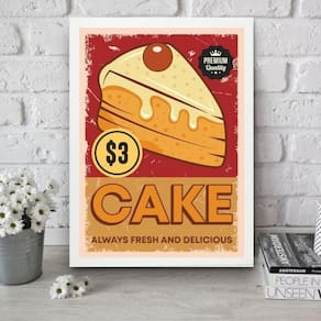 Quadro para cozinha vintage - bolo 24x18cm Cor: moldura branca Informações do produto tire todas as suas dúvidas no descritivo abaixo: decoração para quarto, sala, cozinha, escritório, área gourmet e muito mais. Chega de paredes vazias medidas - cada peça tem 24x18cm a5 . Material do papel - papel fotográfico brilhante de altíssima resolução acabamento - todos os quadros são acompanhados de uma película de acetato para proteção da imagem. - os quadros são embalados de forma segura com plástico bolha com camada dupla de acordo com o tamanho dos quadros. Garantia - garantia de 3 meses. Meu quadro chegou. Como posso fixá-lo Você precisa apenas de um martelo e um prego, pois os quadros já vão acompanhados de penduradores. Esta é a forma mais indicada. Caso prefira, você pode utilizar uma fita dupla face neste caso, sugerimos de alta qualidade para evitar que descole e seu quadro caia . Como posso limpar meu quadro A limpeza é feita como um móvel comum da sua casa. Apenas um pano seco ou espanador são suficientes para tal