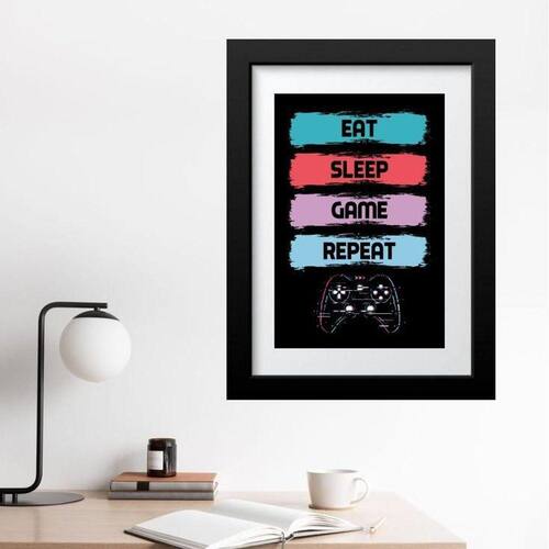 Quadro para quarto gamer - 60x48cm Moldura: madeira preta Informações do produto tire todas as suas dúvidas no descritivo abaixo: decoração para quarto, sala, cozinha, escritório, área gourmet e muito mais. Chega de paredes vazias medidas - cada peça tem 60x48cm . Material do papel - papel fotográfico brilhante de altíssima resolução acabamento - todos os quadros são acompanhados de vidro para proteção da imagem. - moldura em madeira maciça na cor preta ou branca conforme produto escolhido e pendurador. - paspatur branco com 7cm de largura - os quadros são embalados de forma segura com plástico bolha com camada dupla de acordo com o tamanho dos quadros. Garantia - garantia de 3 meses. Meu quadro chegou. Como posso fixá-lo Você precisa apenas de um martelo e um prego, pois os quadros já vão acompanhados de penduradores. Esta é a forma mais indicada. Como posso limpar meu quadro A limpeza é feita como um móvel comum da sua casa. Apenas um pano seco ou espanador são suficientes para tal