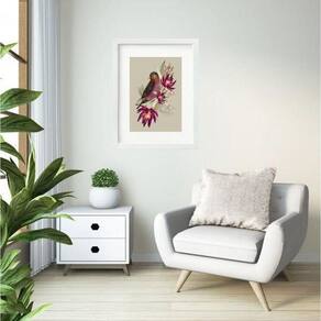 Quadro Passarinho E Flores Magenta - 60X48Cm