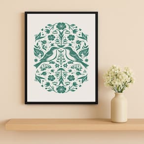 Quadro Passarinhos Folk Art Verde 45x34cm Mold Branca
