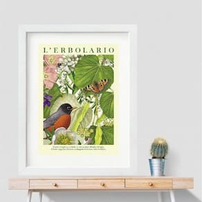 Quadro Pássaro Borboleta Vegetação- 60X48Cm
