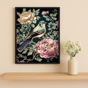 Quadro Pássaro e Flores 24x18cm Mold Branca