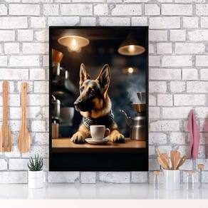 Quadro pastor alemão tomando café 33x24cm - com vidro Moldura: madeira preta Informações do produto tire todas as suas dúvidas no descritivo abaixo: decoração para quarto, sala, cozinha, escritório, área gourmet e muito mais. Chega de paredes vazias medidas - cada peça tem 33x24cm a4 . Material do papel - papel fotográfico brilhante de altíssima resolução acabamento - todos os quadros são acompanhados de vidro para proteção da imagem. - moldura em madeira maciça na cor preta ou branca conforme produto escolhido e pendurador . - os quadros são embalados de forma segura com plástico bolha com camada dupla de acordo com o tamanho dos quadros. - de 3 meses. Meu quadro chegou. Como posso fixá-lo Você precisa apenas de um martelo e um prego, pois os quadros já vão acompanhados de penduradores. Esta é a forma mais indicada. Como posso limpar meu quadro A limpeza é feita como um móvel comum da sua casa. Apenas um pano seco ou espanador são suficientes para tal Marca: Não Informado