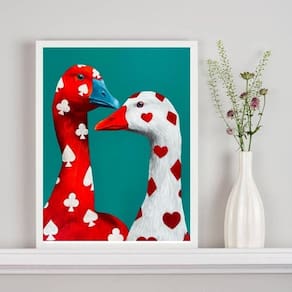 Quadro patinhos naipes carta de baralho 24x18cm - com vidro Cor: moldura branca Informações do produto tire todas as suas dúvidas no descritivo abaixo: decoração para quarto, sala, cozinha, escritório, área gourmet e muito mais. Chega de paredes vazias medidas - cada peça tem 24x18cm a5 . Material do papel - papel fotográfico brilhante de altíssima resolução acabamento - todos os quadros são acompanhados de vidro para proteção da imagem. - moldura em madeira maciça na cor preta ou branca conforme produto escolhido e pendurador . - os quadros são embalados de forma segura com plástico bolha com camada dupla de acordo com o tamanho dos quadros. - de 3 meses. Meu quadro chegou. Como posso fixá-lo Você precisa apenas de um martelo e um prego, pois os quadros já vão acompanhados de penduradores. Esta é a forma mais indicada. Como posso limpar meu quadro A limpeza é feita como um móvel comum da sua casa. Apenas um pano seco ou espanador são suficientes para tal