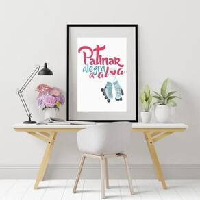 Quadro patins frase - 60x48cm Moldura: madeira preta Informações do produto tire todas as suas dúvidas no descritivo abaixo: decoração para quarto, sala, cozinha, escritório, área gourmet e muito mais. Chega de paredes vazias medidas - cada peça tem 60x48cm . Material do papel - papel fotográfico brilhante de altíssima resolução acabamento - todos os quadros são acompanhados de vidro para proteção da imagem. - moldura em madeira maciça na cor preta ou branca conforme produto escolhido e pendurador. - paspatur branco com 7cm de largura - os quadros são embalados de forma segura com plástico bolha com camada dupla de acordo com o tamanho dos quadros. Garantia - garantia de 3 meses. Meu quadro chegou. Como posso fixá-lo Você precisa apenas de um martelo e um prego, pois os quadros já vão acompanhados de penduradores. Esta é a forma mais indicada. Como posso limpar meu quadro A limpeza é feita como um móvel comum da sua casa. Apenas um pano seco ou espanador são suficientes para tal