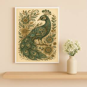 Quadro Pavão Vintage Folk Art 33x24cm Mold Branca Vidro