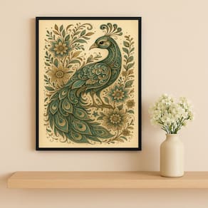 Quadro Pavão Vintage Folk Art 33x24cm Mold Preta Vidro