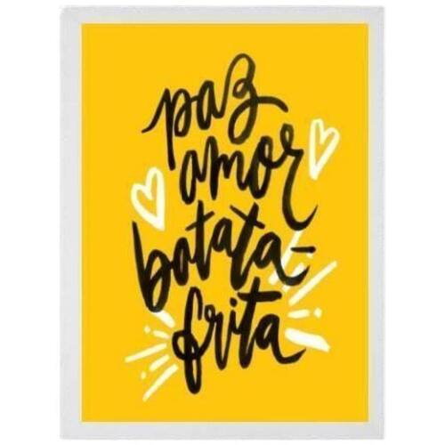 O Quadro Decorativo Paz Amor Batata Frita 24 x 18 Cm A5 é perfeito para a decorar o seu ambiente de forma moderna e charmosa. O quadro é fácil de instalar pois vai acompanhado de pendurador e simples de limpar, apenas um pano seco ou espanador é suficiente para manter o seu quadro conservado. Características: - O papel fotográfico possui alta resolução - Acompanha vidro para proteção da imagem - Fácil de instalar Especificações Marca: Quadros On-Line Temática do quadro: tema Modelo: Paz Amor Batata Frita Material do papel: Fotográfico brilhante Material da moldura: Madeira Acompanha moldura: Sim Acompanha vidro: Sim Acompanha pendurador: Sim Cor da moldura: Branca Medidas: 24 x 18 cm : 3 meses Itens inclusos 01 Quadro Decorativo Paz Amor Batata Frita 24 x 18 Cm Sobre a Quadros On-Line Criada há mais de 30 anos em Belo Horizonte, a Quadros On-Line é uma referência na cidade, sempre prezando a criação de produtos de alta qualidade e excelência no atendimento. Além dos artigos decorativos, confecciona e comercializa obras de arte também. Marca: Não Informado Ean: 7895145464243