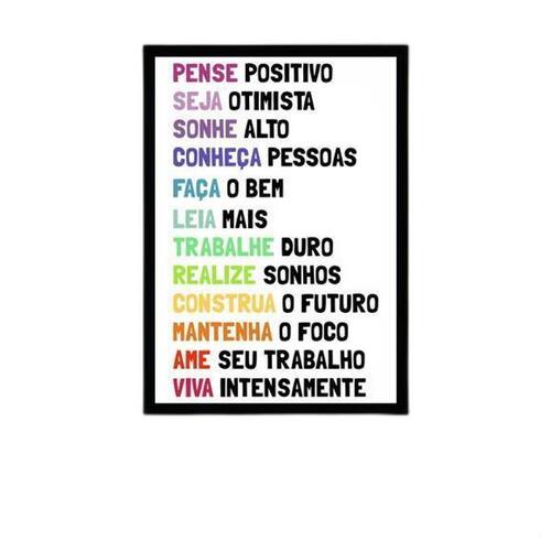 O Quadro Decorativo Pense Positivo - Colorido 24 x 18 Cm A5 é perfeito para a decorar o seu ambiente de forma moderna e charmosa. O quadro é fácil de instalar pois vai acompanhado de pendurador e simples de limpar, apenas um pano seco ou espanador é suficiente para manter o seu quadro conservado. Características: - O papel fotográfico possui alta resolução - Acompanha vidro para proteção da imagem - Fácil de instalar Especificações Marca: Quadros On-Line Temática do quadro: tema Modelo: Pense Positivo - Colorido Material do papel: Fotográfico brilhante Material da moldura: Madeira Acompanha moldura: Sim Acompanha vidro: Sim Acompanha pendurador: Sim Cor da moldura: Preta Medidas: 24 x 18 cm : 3 meses Itens inclusos 01 Quadro Decorativo Pense Positivo - Colorido 24 x 18 Cm Sobre a Quadros On-Line Criada há mais de 30 anos em Belo Horizonte, a Quadros On-Line é uma referência na cidade, sempre prezando a criação de produtos de alta qualidade e excelência no atendimento. Além dos artigos decorativos, confecciona e comercializa obras de arte também. Marca: Não Informado Ean: 7895145457955