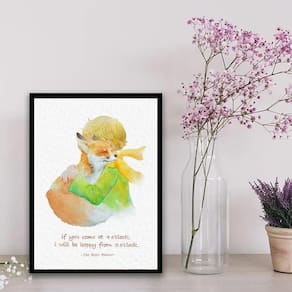 Quadro pequeno príncipe com raposa aquarela 24x18cm - com vidro Moldura: madeira branca Informações do produto tire todas as suas dúvidas no descritivo abaixo: decoração para quarto, sala, cozinha, escritório, área gourmet e muito mais. Chega de paredes vazias medidas - cada peça tem 24x18cm a5 . Material do papel - papel fotográfico brilhante de altíssima resolução acabamento - todos os quadros são acompanhados de vidro para proteção da imagem. - moldura em madeira maciça na cor branca e pendurador . - os quadros são embalados de forma segura com plástico bolha com camada dupla de acordo com o tamanho dos quadros. Garantia - garantia de 3 meses. Meu quadro chegou. Como posso fixá-lo Você precisa apenas de um martelo e um prego, pois os quadros já vão acompanhados de penduradores. Esta é a forma mais indicada. Como posso limpar meu quadro A limpeza é feita como um móvel comum da sua casa. Apenas um pano seco ou espanador são suficientes para tal Cor: moldura branca