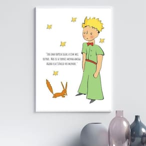 Quadro pequeno príncipe e raposa - frase 33x24cm - com vidro Cor: moldura branca Informações do produto tire todas as suas dúvidas no descritivo abaixo: decoração para quarto, sala, cozinha, escritório, área gourmet e muito mais. Chega de paredes vazias medidas - cada peça tem 33x24cm a4 . Material do papel - papel fotográfico brilhante de altíssima resolução acabamento - todos os quadros são acompanhados de vidro para proteção da imagem. - moldura em madeira maciça na cor preta ou branca conforme produto escolhido e pendurador . - os quadros são embalados de forma segura com plástico bolha com camada dupla de acordo com o tamanho dos quadros. Garantia - garantia de 3 meses. Meu quadro chegou. Como posso fixá-lo Você precisa apenas de um martelo e um prego, pois os quadros já vão acompanhados de penduradores. Esta é a forma mais indicada. Como posso limpar meu quadro A limpeza é feita como um móvel comum da sua casa. Apenas um pano seco ou espanador são suficientes para tal
