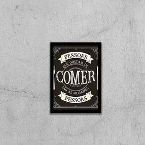 Quadro pessoas que gostam de comer 24x18cm Moldura: madeira preta Informações do produto tire todas as suas dúvidas no descritivo abaixo: decoração para quarto, sala, cozinha, escritório, área gourmet e muito mais. Chega de paredes vazias medidas - cada peça tem 24x18cm a5 . Material do papel - papel fotográfico brilhante de altíssima resolução acabamento - todos os quadros são acompanhados de uma película de acetato para proteção da imagem. - moldura em madeira maciça na cor branca e pendurador móvel que pode ser retirado facilmente caso deseje fixar com fita dupla face. - os quadros são embalados de forma segura com plástico bolha com camada dupla de acordo com o tamanho dos quadros. - de 3 meses prazo de envio pedimos 24 horas úteis no máximo para enviar seu pedido após o envio, segue os prazos normais dos correios, cerca de 7 exceto para norte e nordeste, que pode ser de até 14 . Em diversas cidades, este prazo normalmente é reduzido, mas depende do prazo dos correios. Meu quadro chegou. Como posso fixá-lo Você precisa apenas de um martelo e um prego, pois os quadros já vão acompanhados de penduradores. Esta é a forma mais indicada. Caso prefira, você pode utilizar uma fita dupla face neste caso, sugerimos de alta qualidade para evitar que descole e seu quadro caia . Como posso limpar meu quadro A limpeza é feita como um móvel comum da sua casa. Apenas um pano seco ou espanador são suficientes para tal Marca: Não Informado Ean: 7892091054863