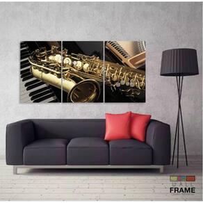 Quadro Piano Teclado E Saxofone Música Decorativo 120x60