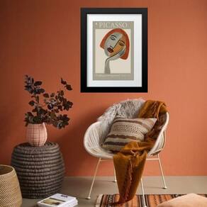 Quadro Picasso Mulher Terracota - 60x48cm - Moldura: Madeira branca
