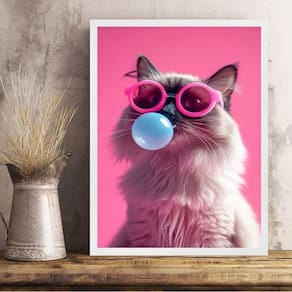 Quadro pink cat bubble gum 45x34cm - com vidro Cor: moldura branca Informações do produto tire todas as suas dúvidas no descritivo abaixo: decoração para quarto, sala, cozinha, escritório, área gourmet e muito mais. Chega de paredes vazias medidas - cada peça tem 45x34cm a3 . Material do papel - papel fotográfico brilhante de altíssima resolução acabamento - todos os quadros são acompanhados de vidro para proteção da imagem. - moldura em madeira maciça na cor preta ou branca conforme produto escolhido e pendurador . - os quadros são embalados de forma segura com plástico bolha com camada dupla de acordo com o tamanho dos quadros. - de 3 meses. Meu quadro chegou. Como posso fixá-lo Você precisa apenas de um martelo e um prego, pois os quadros já vão acompanhados de penduradores. Esta é a forma mais indicada. Como posso limpar meu quadro A limpeza é feita como um móvel comum da sua casa. Apenas um pano seco ou espanador são suficientes para tal Marca: Não Informado Ean: 7897165062058