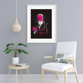 Quadro pink freud- 60x48cm Moldura: madeira branca Informações do produto tire todas as suas dúvidas no descritivo abaixo: decoração para quarto, sala, cozinha, escritório, área gourmet e muito mais. Chega de paredes vazias medidas - cada peça tem 60x48cm . Material do papel - papel fotográfico brilhante de altíssima resolução acabamento - todos os quadros são acompanhados de vidro para proteção da imagem. - moldura em madeira maciça na cor preta ou branca conforme produto escolhido e pendurador. - paspatur branco com 7cm de largura - os quadros são embalados de forma segura com plástico bolha com camada dupla de acordo com o tamanho dos quadros. Garantia - garantia de 3 meses. Meu quadro chegou. Como posso fixá-lo Você precisa apenas de um martelo e um prego, pois os quadros já vão acompanhados de penduradores. Esta é a forma mais indicada. Como posso limpar meu quadro A limpeza é feita como um móvel comum da sua casa. Apenas um pano seco ou espanador são suficientes para tal