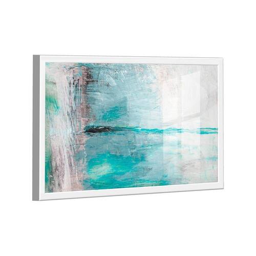 Quadro Pintura Água Abstrato -- BR ARTES Moldura Branca e Vidro - Médio 84x54 -
