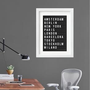 Quadro placa de aeroporto cidades - 60x48cm Moldura: madeira branca Informações do produto tire todas as suas dúvidas no descritivo abaixo: decoração para quarto, sala, cozinha, escritório, área gourmet e muito mais. Chega de paredes vazias medidas - cada peça tem 60x48cm . Material do papel - papel fotográfico brilhante de altíssima resolução acabamento - todos os quadros são acompanhados de vidro para proteção da imagem. - moldura em madeira maciça na cor preta ou branca conforme produto escolhido e pendurador. - paspatur branco com 7cm de largura - os quadros são embalados de forma segura com plástico bolha com camada dupla de acordo com o tamanho dos quadros. - de 3 meses. Meu quadro chegou. Como posso fixá-lo Você precisa apenas de um martelo e um prego, pois os quadros já vão acompanhados de penduradores. Esta é a forma mais indicada. Como posso limpar meu quadro A limpeza é feita como um móvel comum da sua casa. Apenas um pano seco ou espanador são suficientes para tal Marca: Não Informado