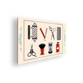 As placas apresentam ilustrações habilmente desenhadas de elementos icônicos da barbearia, como navalhas, pentes, tesouras e bacias de espuma, destacando a maestria e a tradição por trás dessa arte milenar. Os tons sóbrios e ricos conferem um toque sofisticado, enquanto os detalhes minuciosos revelam a paixão pela estética clássica.