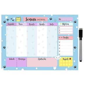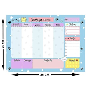 Quadro Planejador de Metal Semanal 20x26cm + Caneta Nossos planejadores são uma ótima opção para você organizar suas tarefas, compromissos, dietas, planos de estudo, definir suas metas, objetivos, entre outros. É feito com material resistente e uma interface lisa possibilitando que você possa apagar e reescrever quantas vezes desejar. utilizar sempre caneta apropriada para quadro branco . Contém: 1 Planejador 20x26cm 1 Caneta para quadro branco com apagador e imã na tampa