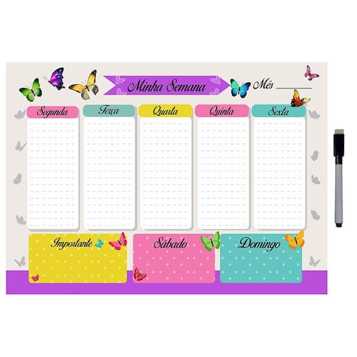 É feito com material resistente e uma interface lisa possibilitando que você possa apagar e reescrever quantas vezes desejar. (Utilizar sempre caneta apropriada para quadro branco).
