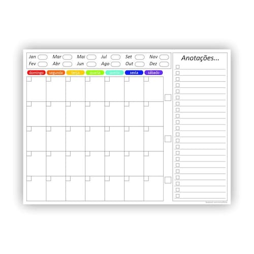 Quadro Planejamento Mensal 3 Canetas Suportes Mod02Os Nossos Quadros de Parede são impressos com tinta Eco-Solventes com qualidade fotográfica em Vinil Autocolante e depois fixado em uma chapa de MDF com 3mm de espessura, seguem juntamente fitas dupla face para fixação. São ideais para quem quer fazer mudanças em qualquer ambiente de sua casa sem gastar muito, além do seu preço acessível dispensa a contratação de profissionais, já que você mesmo a pode fazer a instalação.Quadro de Planejamento + 3 canetas azul, preta e vermelha + Recarga 3 Cores, com suporte.Medidas do Quadro: 67 x 50 cm.Espessura do Quadro: 3mm;Ideal para:- Anotações;- Plano de Estudos;- Negócios;- Dieta;- Metas;- Compromissos;- Escalas.Pronto para fixar e escrever.